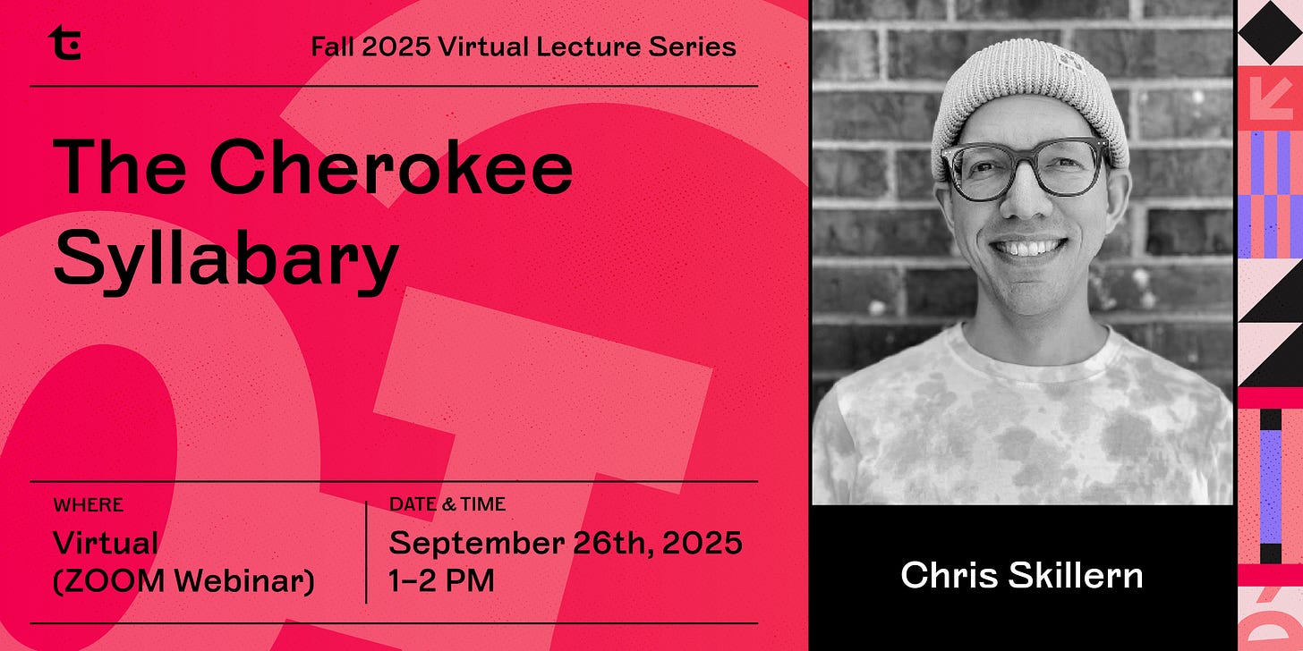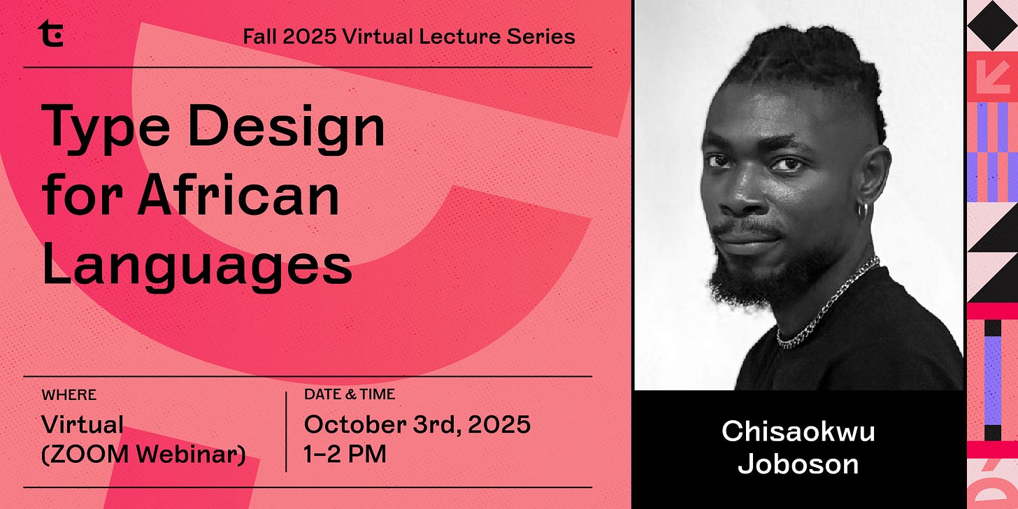 🌱 Help us spread the word! Our Fall 2025 Virtual Lecture Series continues every Friday, 1–2 PM ET. Share this newsletter with your type-loving friends and colleagues. We hope to see you there!